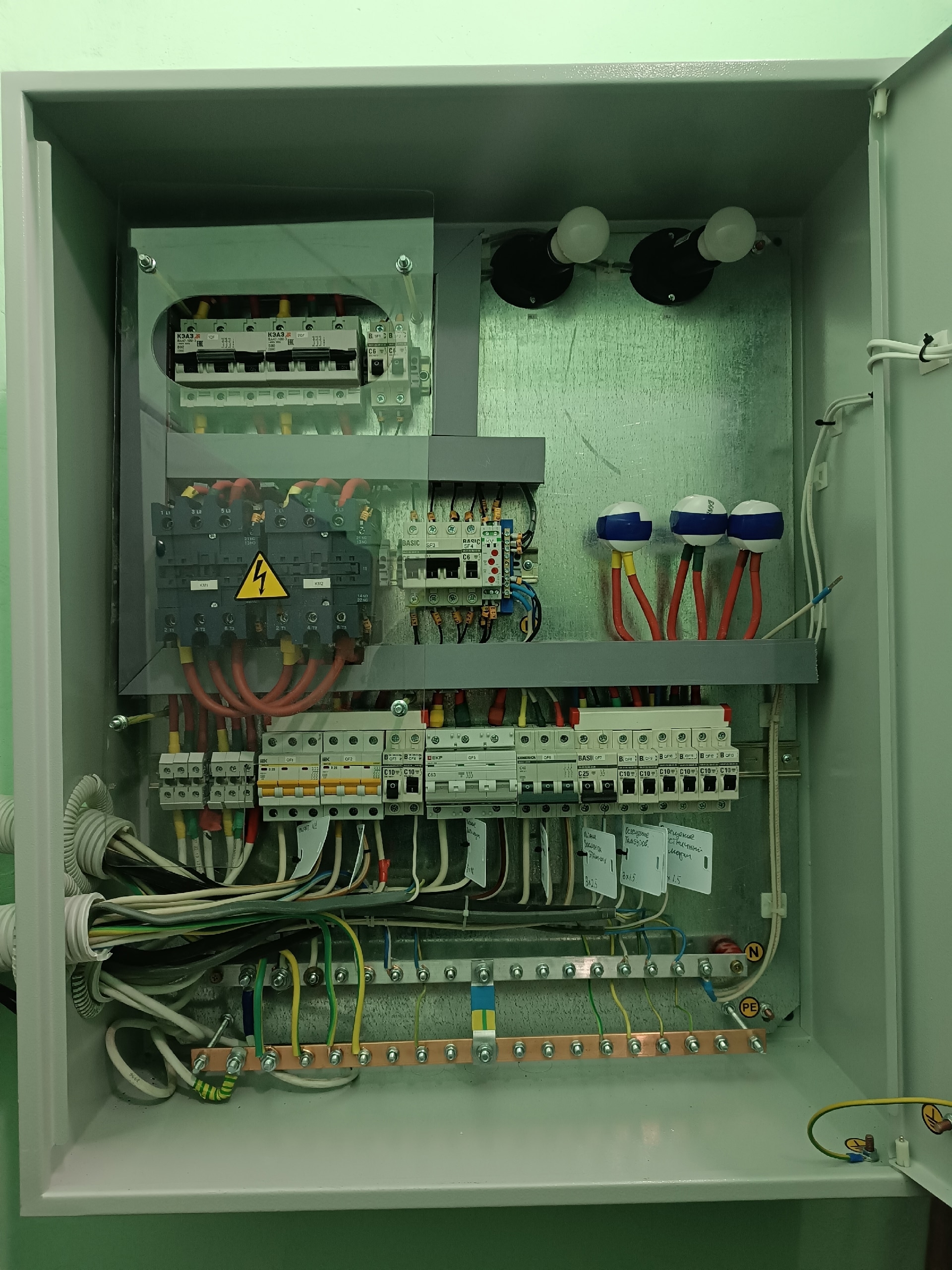 Подрядчик – ООО «СибСпецСтрой» – демонтировал старую электропроводку, проложил новые силовые и вспомогательные электролинии, установил вводно-распределительные устройства (ВРУ), распределительные и групповые щиты, сети для обеспечения работы инженерных систем (лифты, системы отопления и т. д), энергосберегающие, в том числе пылевлагозащищённые, светильники, датчики движения и освещённости и так далее.